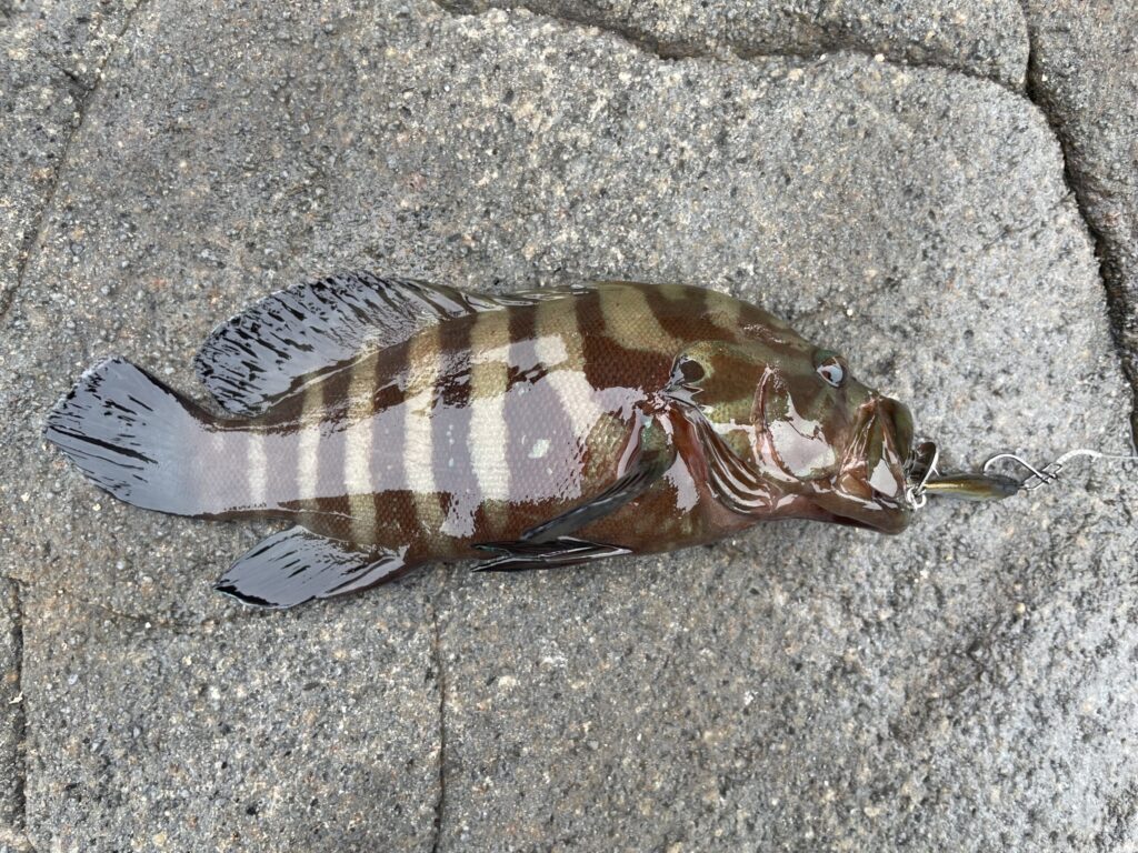 沖磯で根魚やヒラスズキをかけましたが、フックが小さく弱い為バレました💦