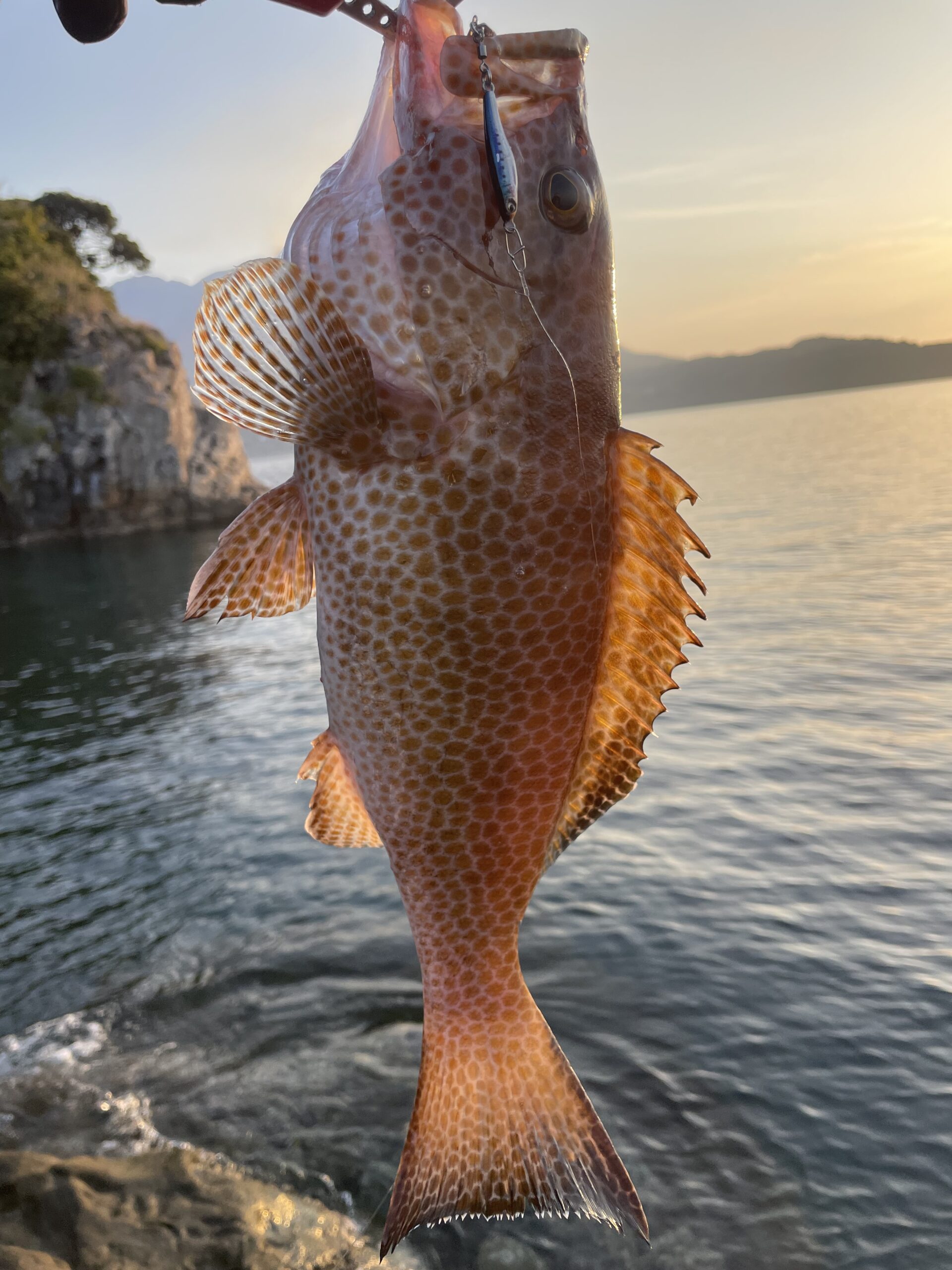 沖磯で根魚やヒラスズキをかけましたが、フックが小さく弱い為バレました💦