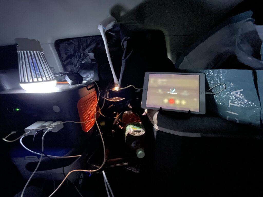 スマホ、モバイルバッテリー、ライトとポータブル電源なしでは車中泊は厳しいので、絶対にあった方がいいです!